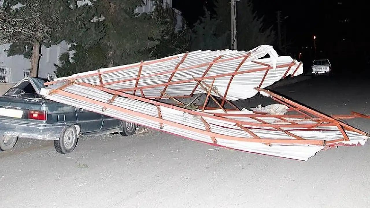 Rüzgarın şiddetiyle çevreye savrulan çatılar, farklı yerlerdeki üç otomobilde büyük çapta hasar oluşturdu.