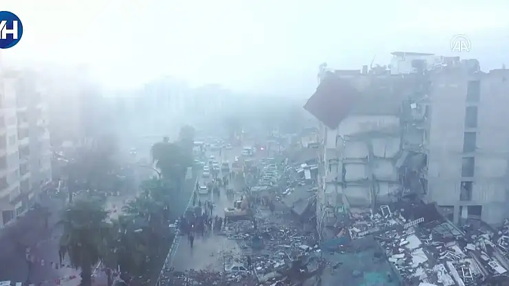 Merkez üssü Kahramanmaraş'ın Pazarcık ve Elbistan ilçeleri olan 10 ili etkileyen 7,7 ve 7,6 büyüklüğündeki depremlerin ardından yıkılan binalar havadan görüntülendi.