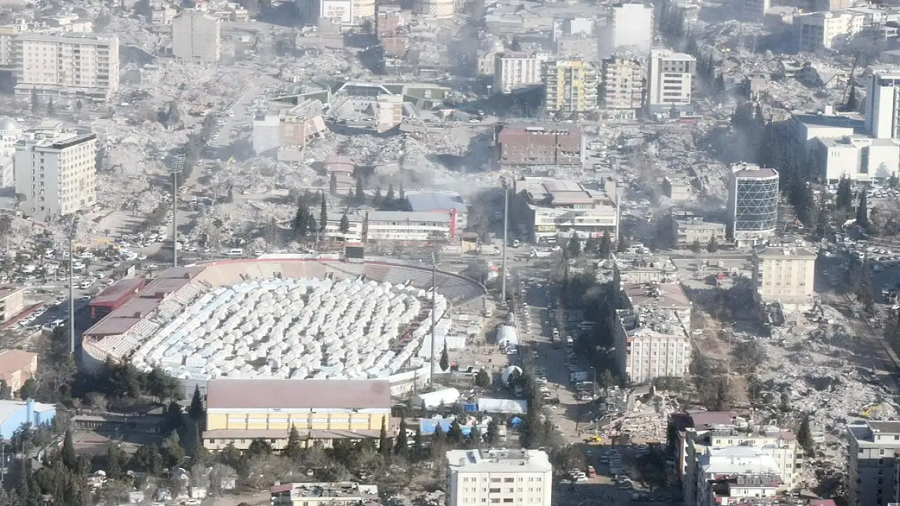 Kahramanmaraş merkezli depremlerin ardından binlerce binanın yerle bir olduğu kent, helikopterle havadan görüntülendi. Eski mahallelerdeki 40-50 yıllık binalar yıkılırken, yeni imarlı bölgelerde yapılan yüksek katlı binaların ayakta kaldığı gözlendi.Pazarcık ve Elbistan merkezli 2 büyük deprem aralarında Kahramanmaraş'ın da olduğu 10 ilde büyük yıkıma yol açtı. Binlerce binanın yerle bir olduğu kentlerde, 31 binden fazla kişi hayatını kaybetti. Deprem bölgesinde arama-kurtarma çalışmaları sürerken, depremin merkez üssü Kahramanmaraş helikopterle havadan görüntülendi. DHA ekibinin çektiği görüntülere göre; kentin eski yerleşim birimleri Hayrullah, Kayabaşı, Bahçelievler, Şazibey ve Barbaros mahallelerinde çoğunluğu 40-50 yıllık olan binalar yerle bir oldu. Yine görüntülerde, enkaz alanlarının birbirine yakın noktalar olduğu görüldü. Kentin yeni imarlı bölgelerinde yapılan yüksek katlı binaların ise ayakta kaldığı gözlendi. Öte yandan süren arama-kurtarma çalışmaları ile 12 Şubat Stadyumu'na kurulan çadır kent, havadan görüntülendi.