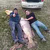 Adıyaman'ın Kahta ilçesinde, ava çıkan balıkçılar tarafından yaklaşık 1,70 metre uzunluğunda, dev turna balığı yakalandı.