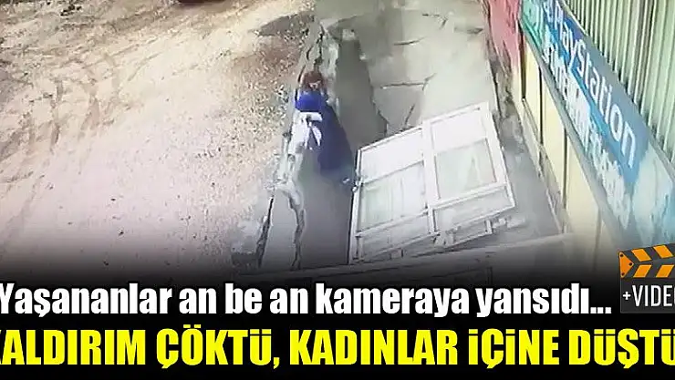 Kaldırım çöktü, kadınlar içine düştü! Yaşananlar an be an kameraya yansıdı...