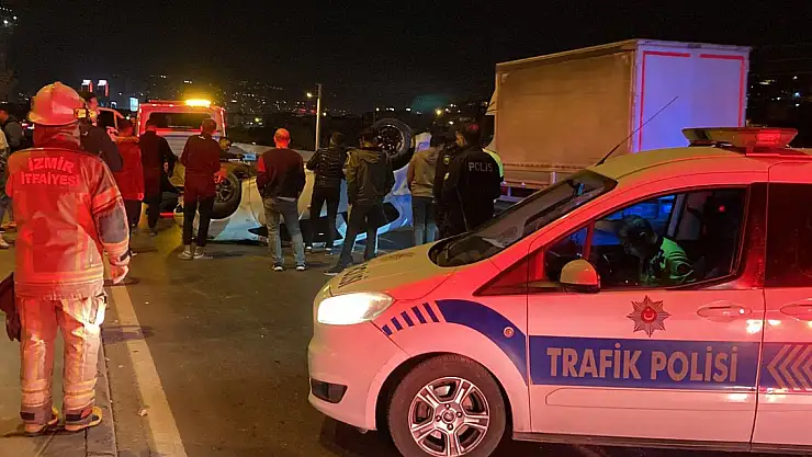 İZMİR'in Konak ilçesinde, sürücüsünün kontrolünden çıkan otomobil kaldırıma çarpıp takla attı.