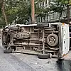 Kaldırıma çarparak takla atan ve ardından park halindeki bir araca çarparak durabilen ticari aracın sürücüsü yaralandı.