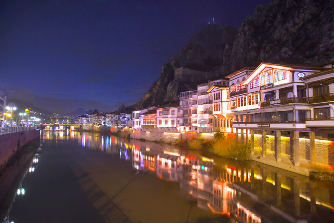 Su yansıtır, gece başka gündüz başka siluetler verir. Durgun olduğunda rengi farklı coştuğunda değişmiştir. Bir de suya yansıyan objeler tarihi ve kültürel varlıklarsa fotoğrafçı için bulunmaz hazine olur. Amasya tam da böyle bir yer. Yeşilırmak boyunca uzanıp giden Yalıboyu Evleri günün farklı saatlerinde çok hoş pozlar veriyor izleyene. Işıklandırılma sayesinde geceleri suya vuran yakamozlar hele bir de mavi saatlerde fotoğraflanacak olursa enfes kareler çıkıyor.