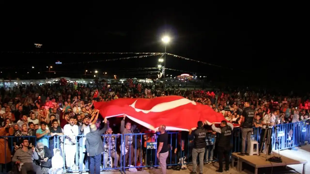 Protokol konuşmalarının ardından vatandaşlar Esat Kabaklı’nın söylediği türkü ve kahramanlık marşlarıyla coştu. Özellikle Bil Oğlum, O Mübarek Bayrak, Çanakkale türküleri izleyicilerden defalarca tekrarı istendi.Yoğun katılımın gerçekleştiği konserde, vatandaşlar sık sık Esat Kabaklı'ya eşlik ederek türkülerle birlikte milli ve manevi değerler şaha kalktı.