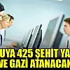 Aile, Çalışma ve Sosyal Hizmetler Bakanlığı tarafından 19 Eylül'de çeşitli kamu kurum ve kuruluşlarına 425 şehit yakını ve gazinin ataması yapılacak