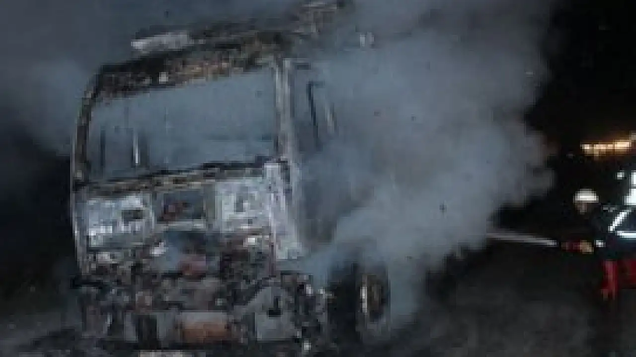 Kamyon alev alev yandı, şoför zor kurtuldu