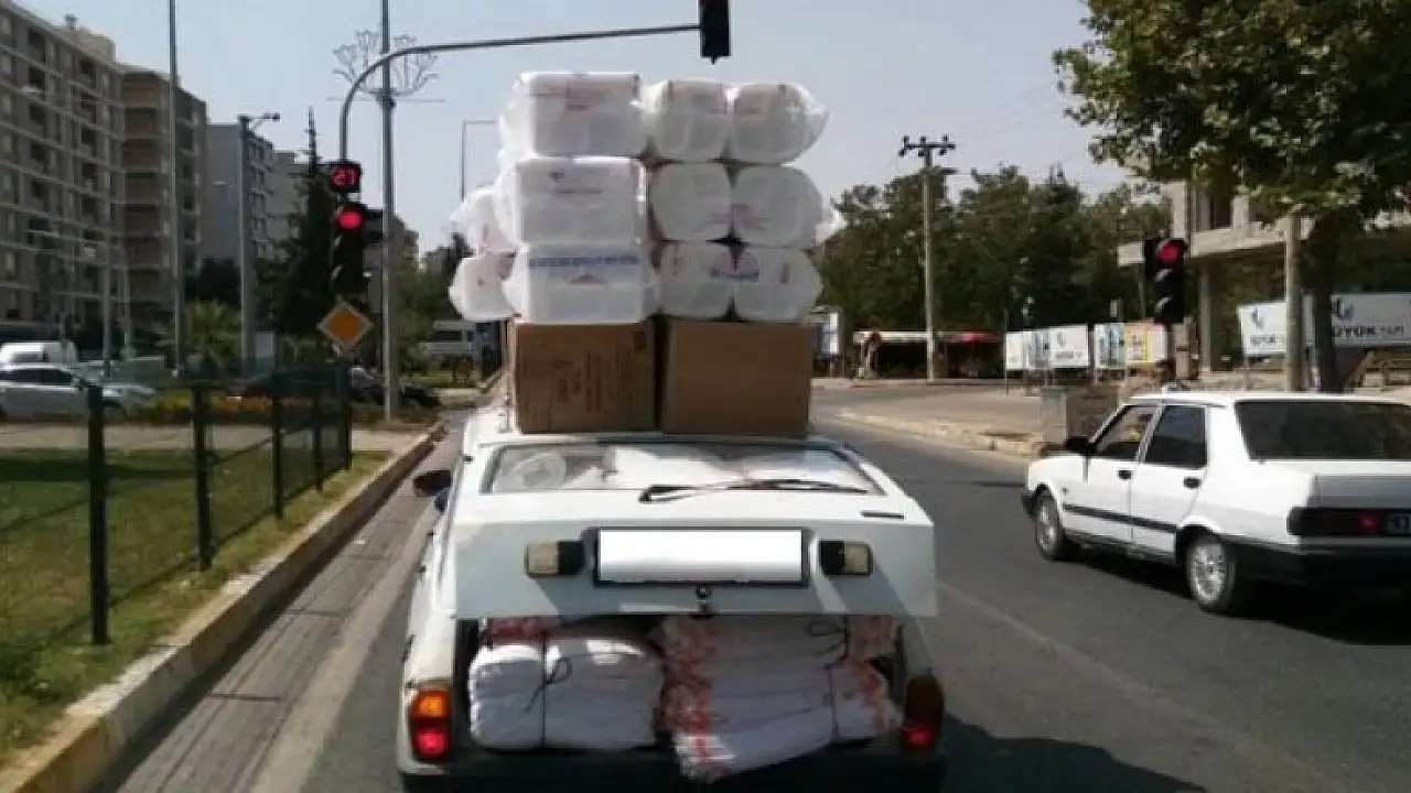 Adıyaman Atatürk Bulvarı'nda trafikte seyreden otomobilin üzerindeki yük görenleri şaşırttı. Köpük tabakların bulunduğu paketleri otomobilin üzerine yükleyen sürücü olası bir kazaya aldırış etmeden ilerledi. Kamyonet gibi yük taşıyan otomobili gören diğer sürücüler otomobilin fotoğrafını çekti.