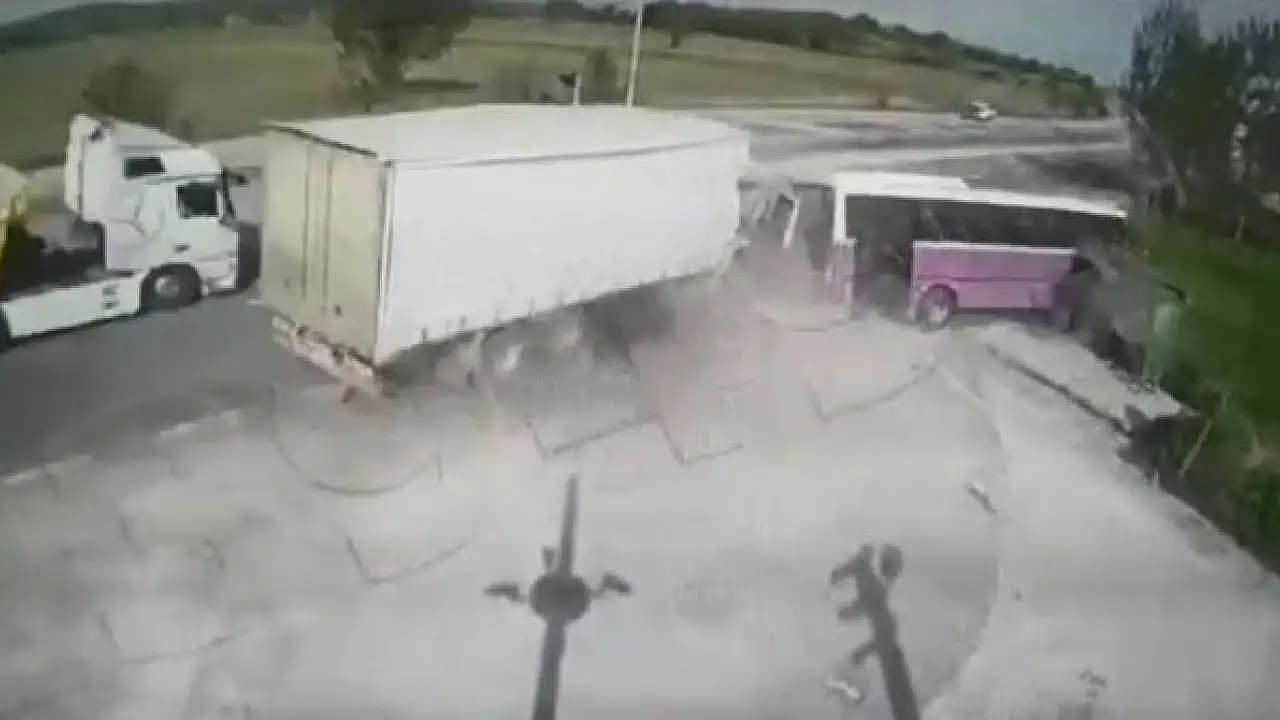 Sakarya'nın Söğütlü ilçesinde kamyonun, yolcu indirmek için durağa yanaşan özel halk otobüsüne çarptığı kazada 1 kişi öldü, 10 kişi yaralandı. Kaza, güvenlik kamerasına yansıdı.