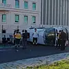 Kazada yan devrilen servis minibüsünde bulunan 8 kişi yaralandı.