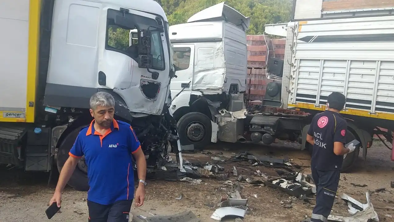 Kamyon, park halindeki TIR'lara çarptı: 3 yaralı