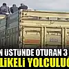 Ankara Polatlı-Konya bağlantı yolunda seyir halinde bulunan bir kamyonun üst kısmına oturan 3 kişinin tehlikeli yolculuğu kameralara yansıdı. Olası bir kazada can güvenliğinin hiçe sayıldığı bu yolculuk, trafikteki diğer yolcular tarafından şaşkınlıkla izlendi.
