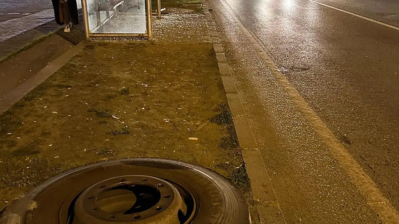 Samsun'un Atakum ilçesinde kamyondan fırlayan teker, otobüs durağında bekleyen genç kızın yaralanmasına sebep oldu.