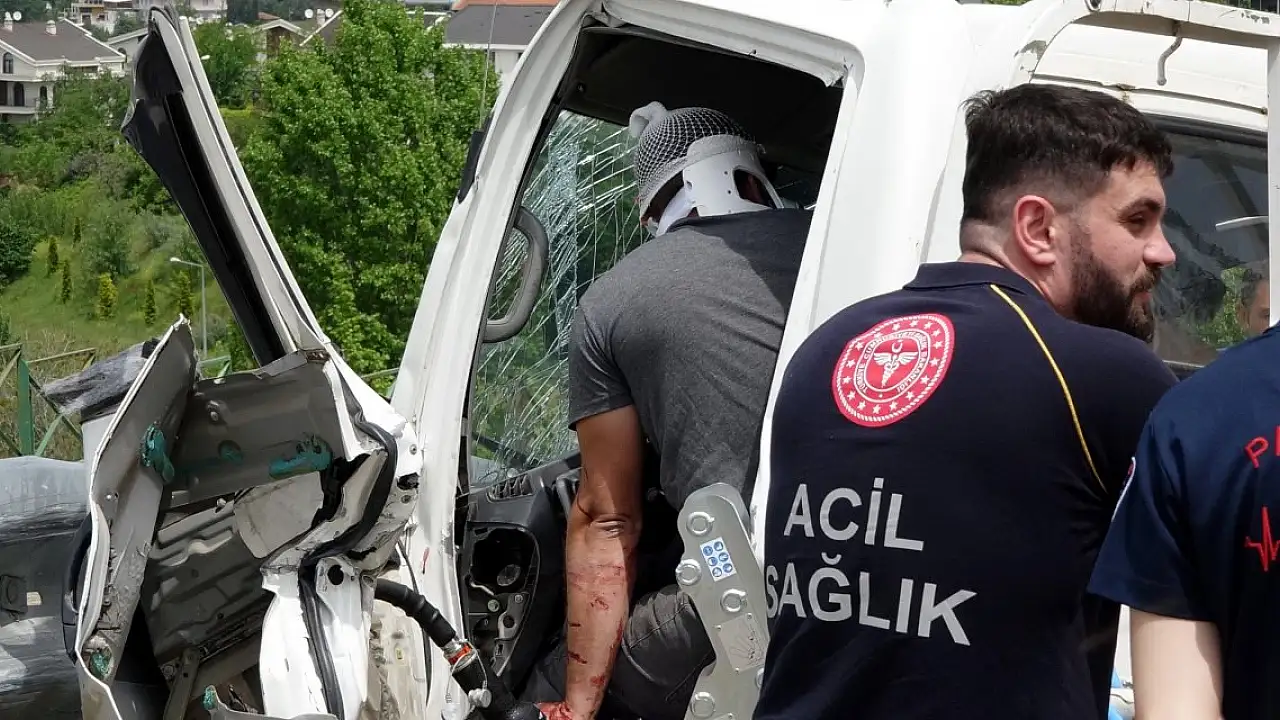 BURSA'da bariyerlere çarpan kamyonetin sürücüsü İsmail S., sıkıştığı yerden itfaiye ekiplerince kurtarılarak, hastaneye kaldırıldı.