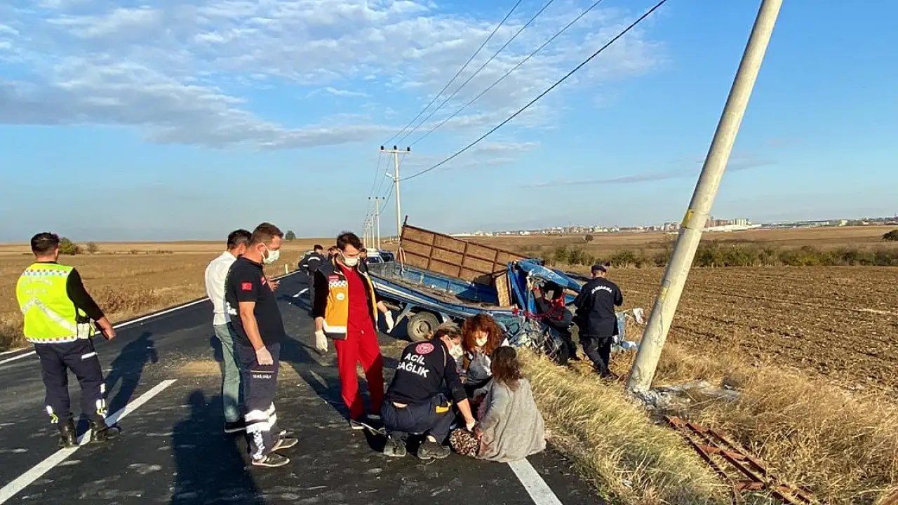Kaza, akşam saatlerinde Çorlu'nun Sarılar Mahallesi kara yolu üzerinde meydana geldi. Batuhan D. yönetimindeki 59 AFY 160 plakalı kamyonet, sürücüsünün direksiyon hakimiyetini kaybetmesi sonucu yol kenarındaki elektrik direğine çarptı. Çarpmanın şiddetiyle ön tarafı hurdaya dönen kamyonetin şoför mahalli ile aracın açık kasasında bulunan 8 kişi yaralandı. İhbar üzerine bölgeye, jandarma ve sağlık ekipleri sevk edildi. Çevreye savrulan yaralılar, ambulanslarla Çorlu Devlet Hastanesi'ne kaldırıldı. Yaralılardan durumu ağır olan ve henüz kimlikleri belirlenemeyen 5-6 aylık olduğu belirtilen bebek ile 1 kadın doktorların tüm müdahalesine rağmen kurtarılamadı. Hastanede 1'i çocuk 6 kişinin tedavisi sürüyor.