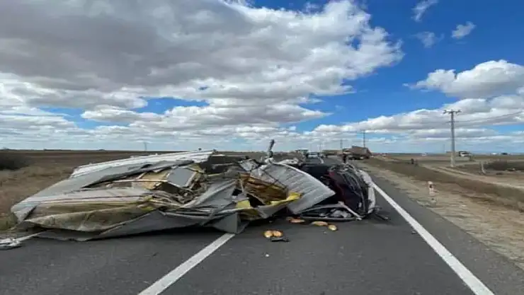 Tek şeritli yolda meydana gelen feci kazada, kamyonet yolda kağıt gibi ezilerek adeta paramparça olurken, hafriyat kamyonunda ise hasar meydana geldi.