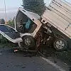Kamyonet refüjdeki ağaca çarptı: Baba-oğul yaralandı