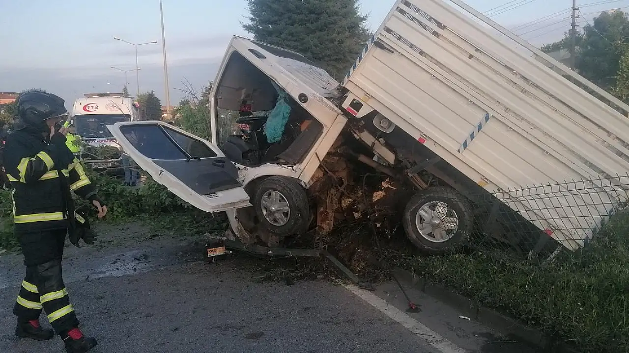 SAMSUN'un Çarşamba ilçesinde sürücüsünün direksiyon hakimiyetini kaybettiği kamyonet refüjdeki ağaca çarptı.