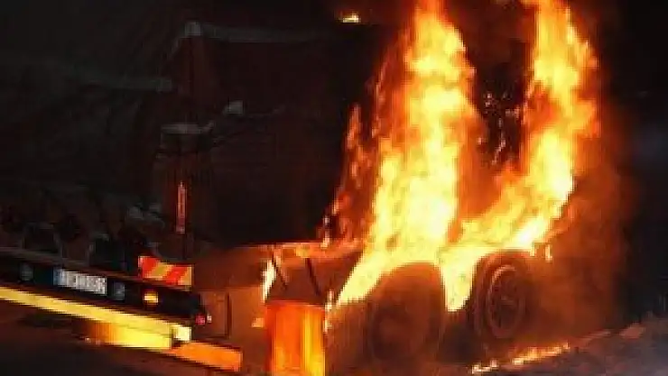 Kamyonet yangını güvenlik kamerasında