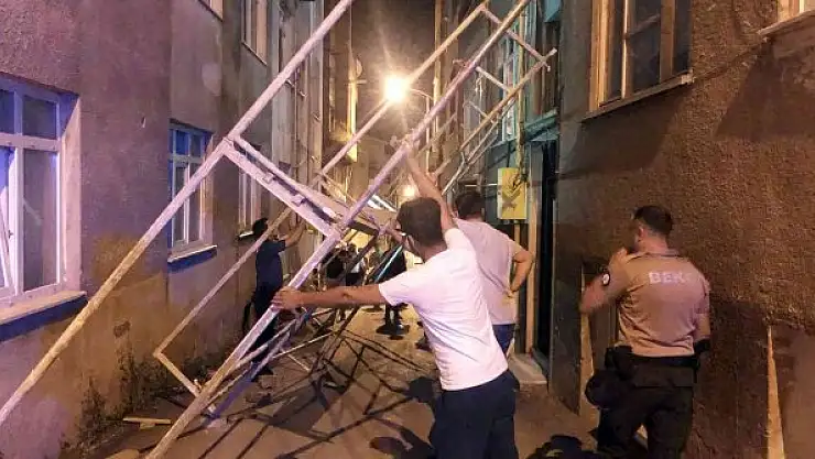 Sinop'ta bir ara sokaktan geçen kamyonetin çarptığı inşaat iskelesi, karşı apartmana devrildi.