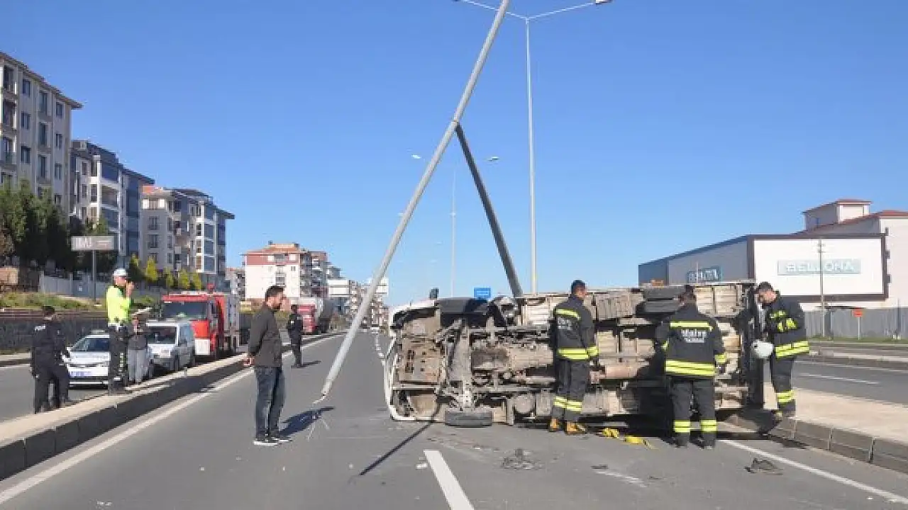 TEKİRDAĞ'ın Malkara ilçesinde sürücüsünün kontrolünden çıkan kamyonet refüjdeki aydınlama direğine çarptıktan sonra karşı şeride geçerek devrildi.
