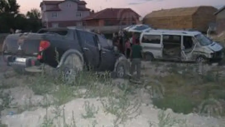 Konya'da minibüsle kamyonetin çarpışması sunucu meydana gelen trafik kazasında 9 kişi yaralandı.