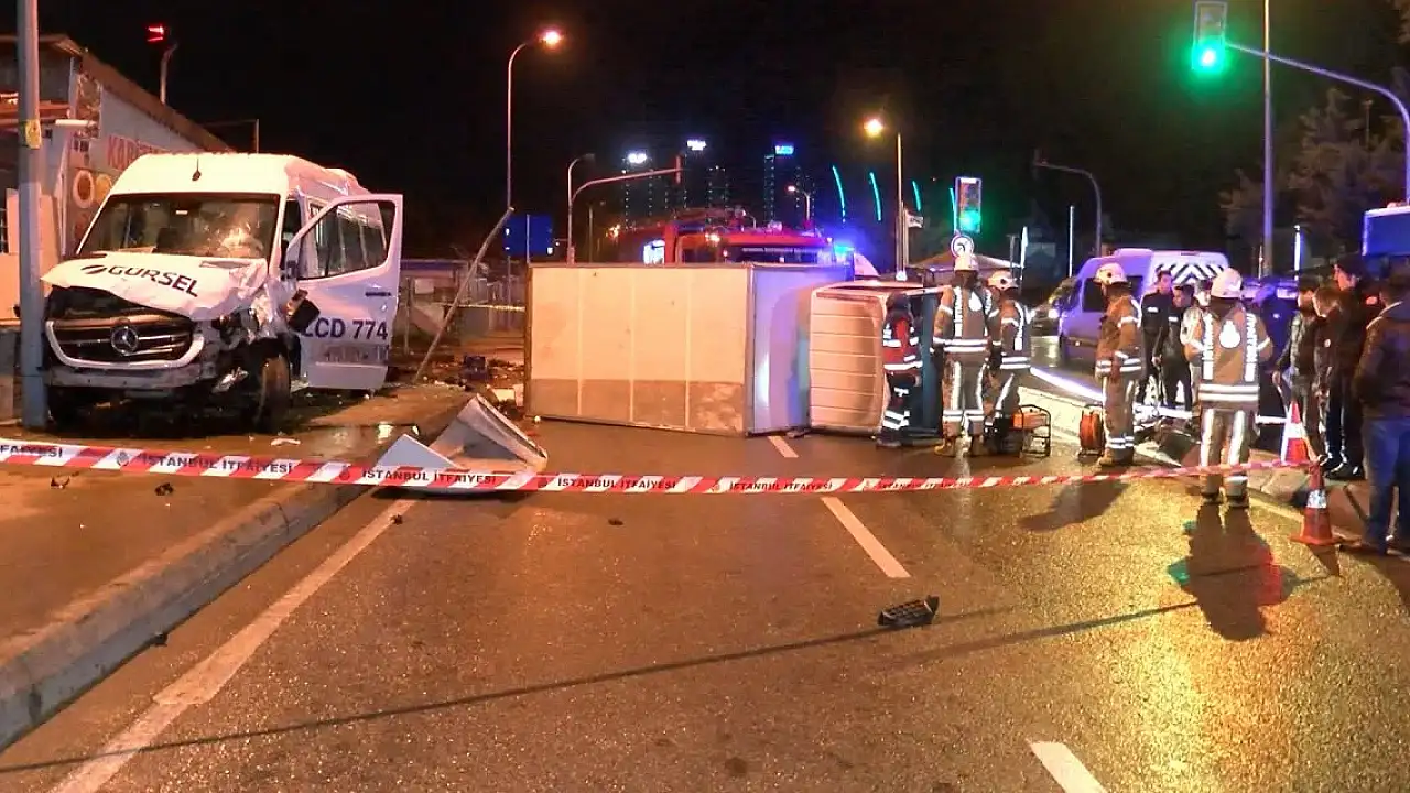 İSTANBUL KARTAL'da sebze ve meyve yüklü kamyonetle servis minibüsünün çarpışması sonucu meydana gelen kazada 1 kişi hayatını kaybederken, 2 kişi yaralandı.