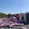 Kamyonetle tır çarpıştı, tırdaki yemler yola saçıldı