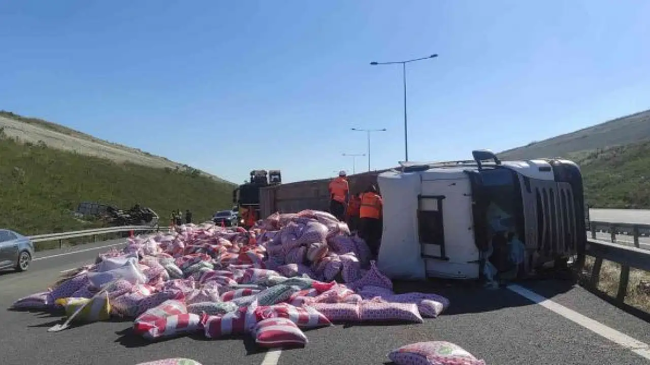 Kuzey Marmara Otoyolu Yassıören yol ayrımında bir kamyonet ile tırın karıştığı kaza sonrasında kamyonet takla attı, tır ise yan yattı. Tırda bulunan yemlerin yola saçılması nedeniyle otoyol bir süre trafiğe kapandı.