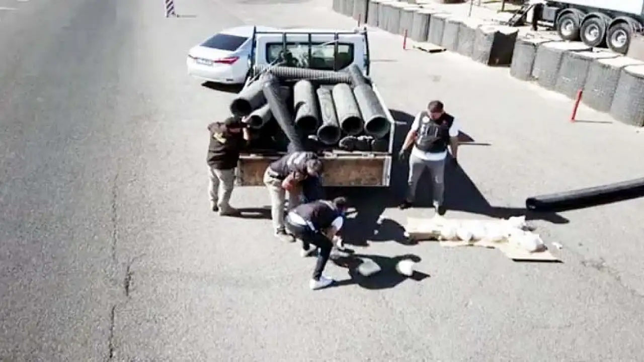 Kamyonette, borulara gizlenen 128 kilo esrar ele geçirildi