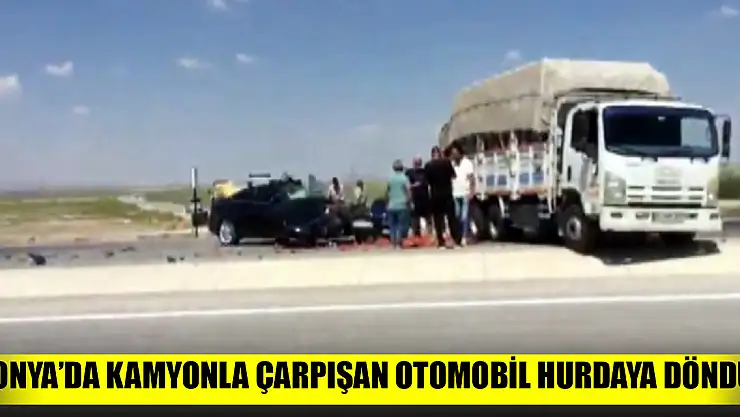 Konya'nın Ereğli ilçesinde domates yüklü kamyonla çarpışan otomobil hurdaya dönerken sürücü ağır yaralandı.