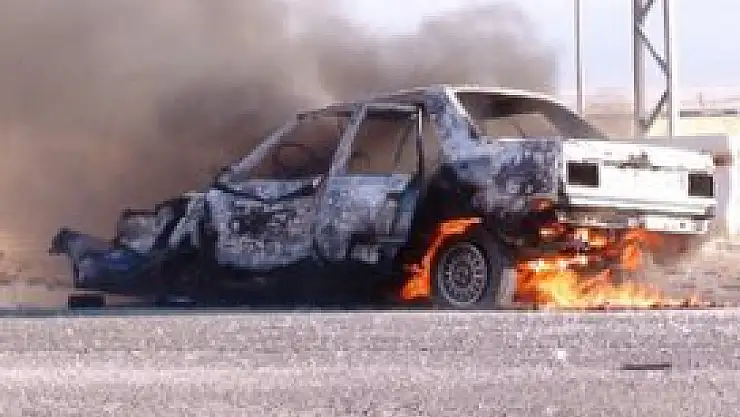 Konya'nın Ereğli ilçesinde, kamyonla çarpışan otomobilde yangın çıktı. Kaza sonrası yanarak kullanılamaz hale gelen otomobilin sürücüsü yaralandı.