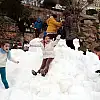 Kamyonlarla getirilen karla kışın tadına vardılar