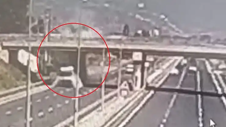Jandarma ekipleri, kazayla ilgili soruşturma başlatırken, kaza anı çevredeki bir iş yerinin güvenlik kamerasına anbean yansıdı. Görüntülerde, kamyonun açık kalan damperinin, çarptığı üst geçitte sıkıştığı ve kamyonun bariyerleri aşıp karşı yöne geçerek şarampole düştüğü görüldü. O sırada karşı yönden gelen araç sürücülerinin, son anda durup, kazadan saniyelerle kurtulması da görüntülere yansıdı. (DHA)