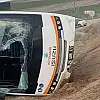Savrulan otobüs devrilerek yan yattı. Kazada otobüs sürücüsü Uğur S. ile araçta bulunan 10 yolcu yaralandı. İhbar üzerine gelen sağlık ekiplerince ilk müdahalesi olay yerinde yapılan yaralılar ambulansla hastaneye kaldırılarak tedavi altına alındı. Yaralıların sağlık durumlarının iyi olduğu belirtildi. Kazayla ilgili soruşturma başlatıldı.