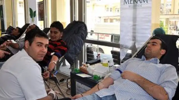 Kan bağışında bulunan öğrencilere Meram Belediyesi tarafından hoşaf-ekmek ikram edildi.
