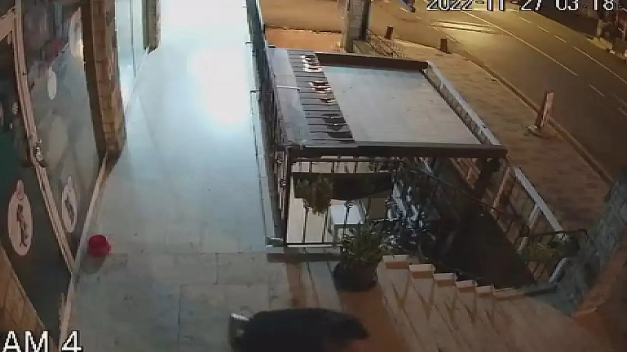 SARIYER'de sokak köpeğini yere yatırarak boğmaya çalışan saldırganın güvenlik kamerası görüntüleri ortaya çıktı. Dehşete düşüren görüntülerde saldırganın köpeği dakikalarca boğmaya çalıştıktan sonra merdiven boşluğuna da attığı görülüyor.