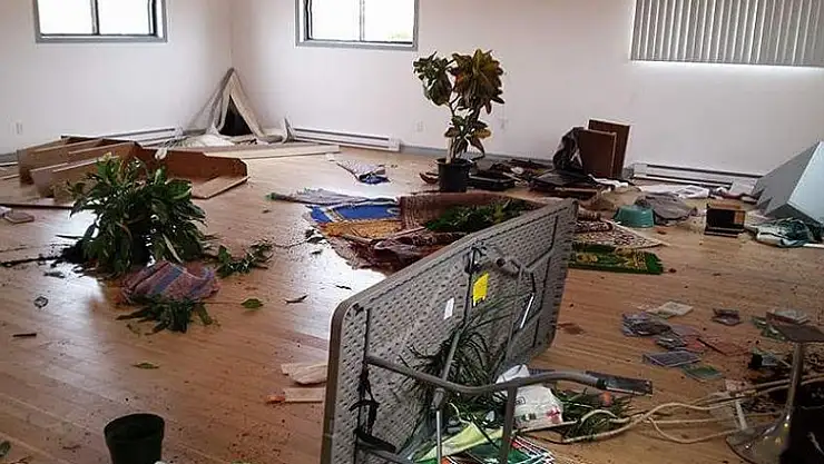 Kentteki İslam Kültür Merkezine giren saldırgan ya da saldırganlar, mescitteki kitaplıkları kırdı, dini kitapları yerlere saçtı, duvarlara da hasar verdi.