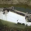 Kanala uçup ters dönen araçtan burunları kanamadan çıktılar