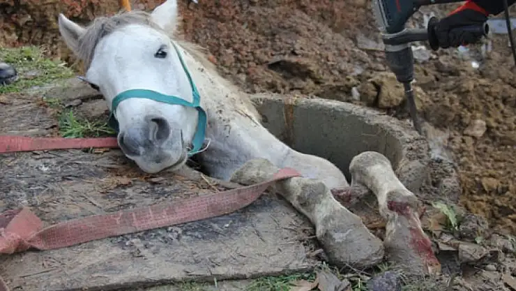 Uzun süren çalışmaların ardından kurtarılan ata ilk müdahale ise olay yerine çağrılan veteriner tarafından yapıldı. At daha sonra sahiplerine teslim edildi.