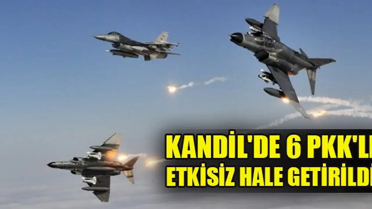 MİLLİ Savunma Bakanlığı, Irak'ın kuzeyi Kandil'de tespit edilen 6 PKK'lı teröristin düzenlenen hava harekâtıyla etkisiz hale getirildiğini açıkladı.
