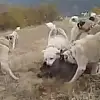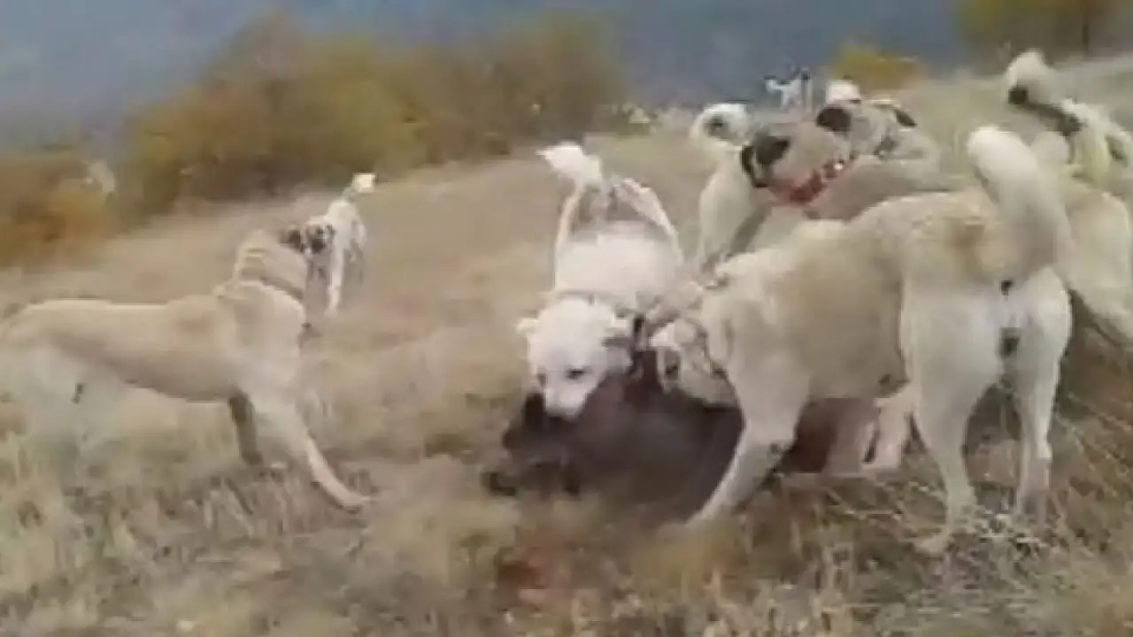 Sivas'ta Kangal ırkı koruma köpeklerinin yerleşim yerine dadanan domuzu etkisiz hale getirmeleri cep telefonuyla kaydedildi