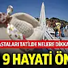 Kemoterapi tedavisinin sıklığı, kan değerleri, yan etkiler ve beslenme durumuna göre tatil planlamasının yapılması gerektiğini vurgulayan Prof. Dr. Yıldırım, kanser hastalarının tatile çıkarken dikkat etmesi gereken 9 önemli maddeyi sıraladı: