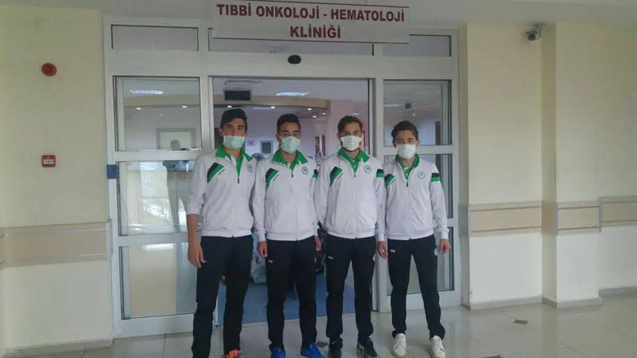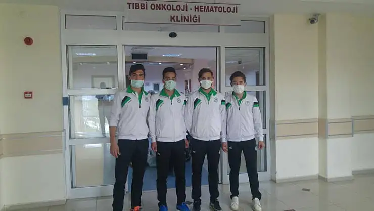Atiker Konyaspor'un U15 ve U16 takımı futbolcuları, Acil Hastalara Yardım Vakfı'nın hanımlar komisyonu üyeleriyle birlikte Meram Tıp Fakültesi Hastanesi'nde yatmakta olan kanser hastalarını ziyaret etti.