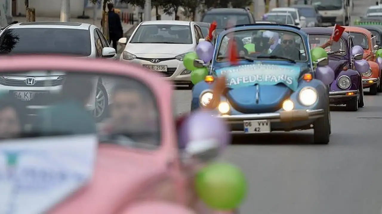 Kentin cadde ve sokaklarında balonlarla süslenen vosvos araçlarıyla dolaştırılan kanser hastaları, büyük mutluluk yaşadı.