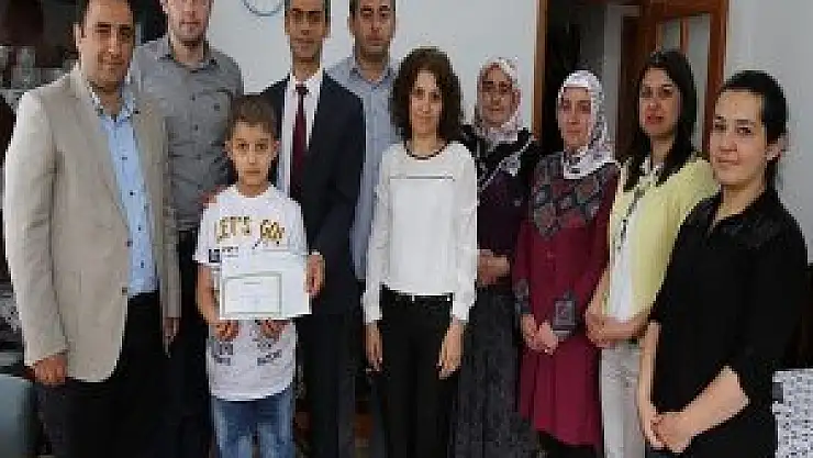 İl Milli Eğitim Müdürü Abdulcelil Kahveci, Okul Müdürü Önder Tekin, sınıf öğretmeni Habip Avcı ve Gülcan Yelkenci, evine gittikleri öğrenciye, karnesini ve çeşitli hediyeler verdi.
