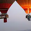 Yerli ve yabancı turistlerin bölgenin tarihi, kültürel ve doğal güzelliklerini gökyüzünden izlemesine imkan sunan sıcak hava balonları, gün doğumu vaktinde peş peşe gökyüzüne yükseldi.