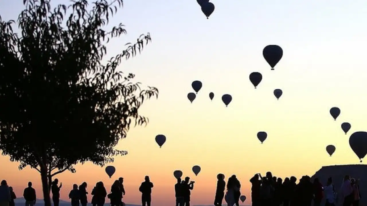Peribacaları ve doğal kaya oluşumlarıyla kaplı vadiler üzerinde sıcak hava balon turunun yapıldığı Kapadokya'da, turistler henüz gün ağarmadan yollara düşüp balonların renklendirdiği manzarayı izleyebilmek için tepelerde yer bulma telaşına giriyor.