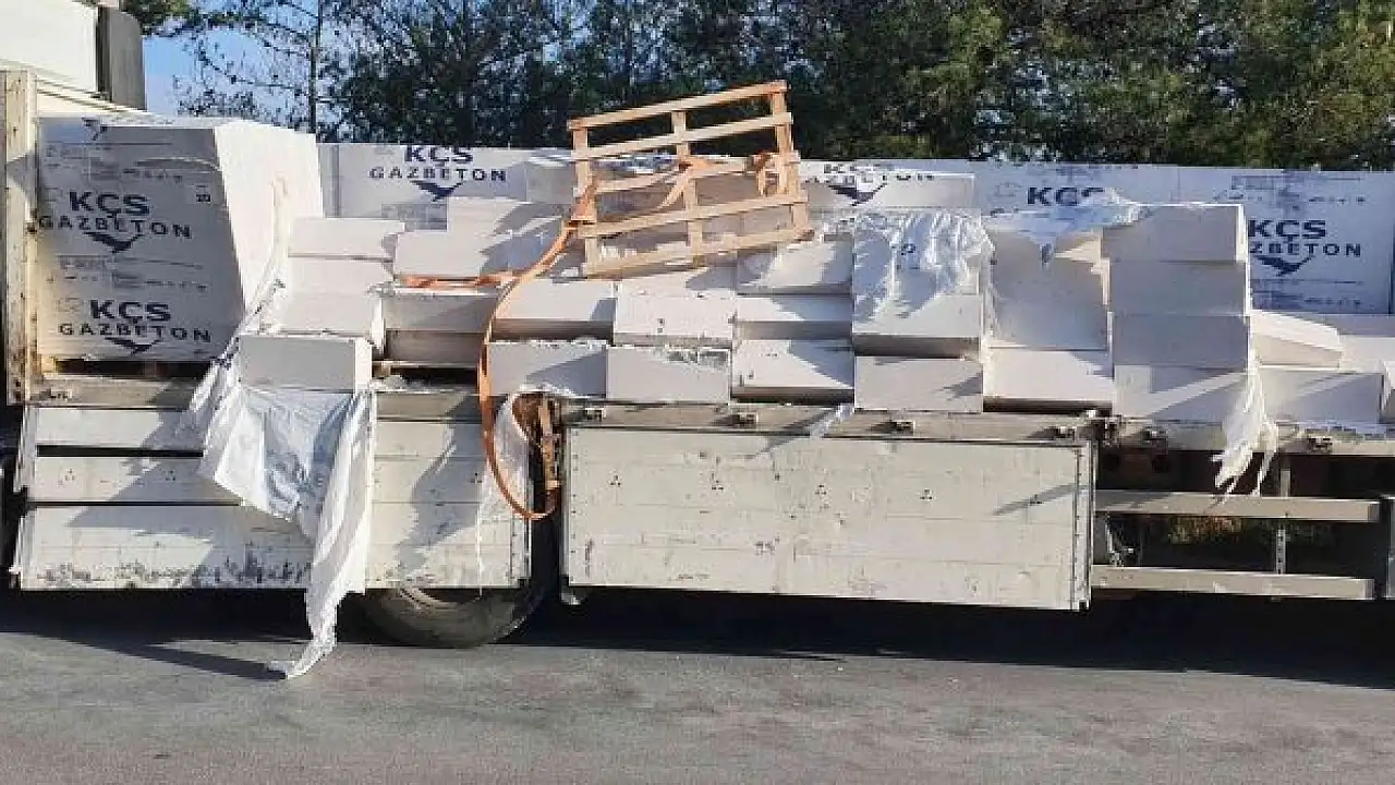 Muğla'nın Bodrum ilçesinde gaz beton yüklü tırdaki betonların bir kısmı, karayoluna döküldü. Tırın arkasından gelen bir otomobilin dökülen gaz betonlara çarptığı kaza, maddi hasarla atlatıldı.