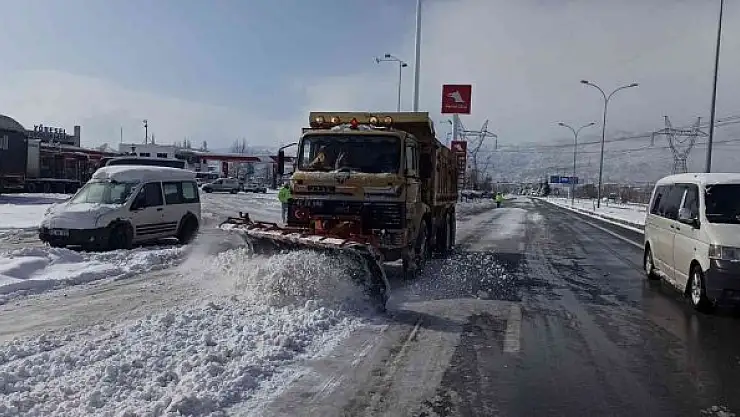 Kar yağışının etkili olduğu Alacabel mevkiinde karayolları ekiplerinin yol açma çalışmaları sürüyor.
